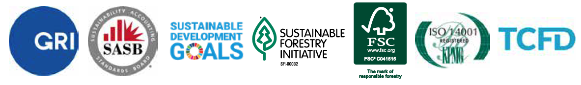 Our reporting content is guided by the Global Reporting Initiative (GRI); the Sustainability Accounting Standards Board (SASB) Pulp and Paper Product and Forestry Management industry specific standards; the Task Force on Climate-Related Financial Disclosure (TCFD) and the United Nations Sustainable Development Goals (SDGs).